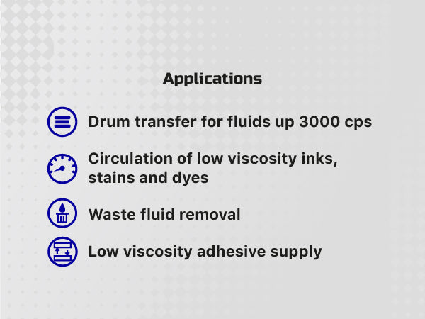 Printing and Dye Circulation: Perfect for circulating low viscosity inks, stains, and dyes.