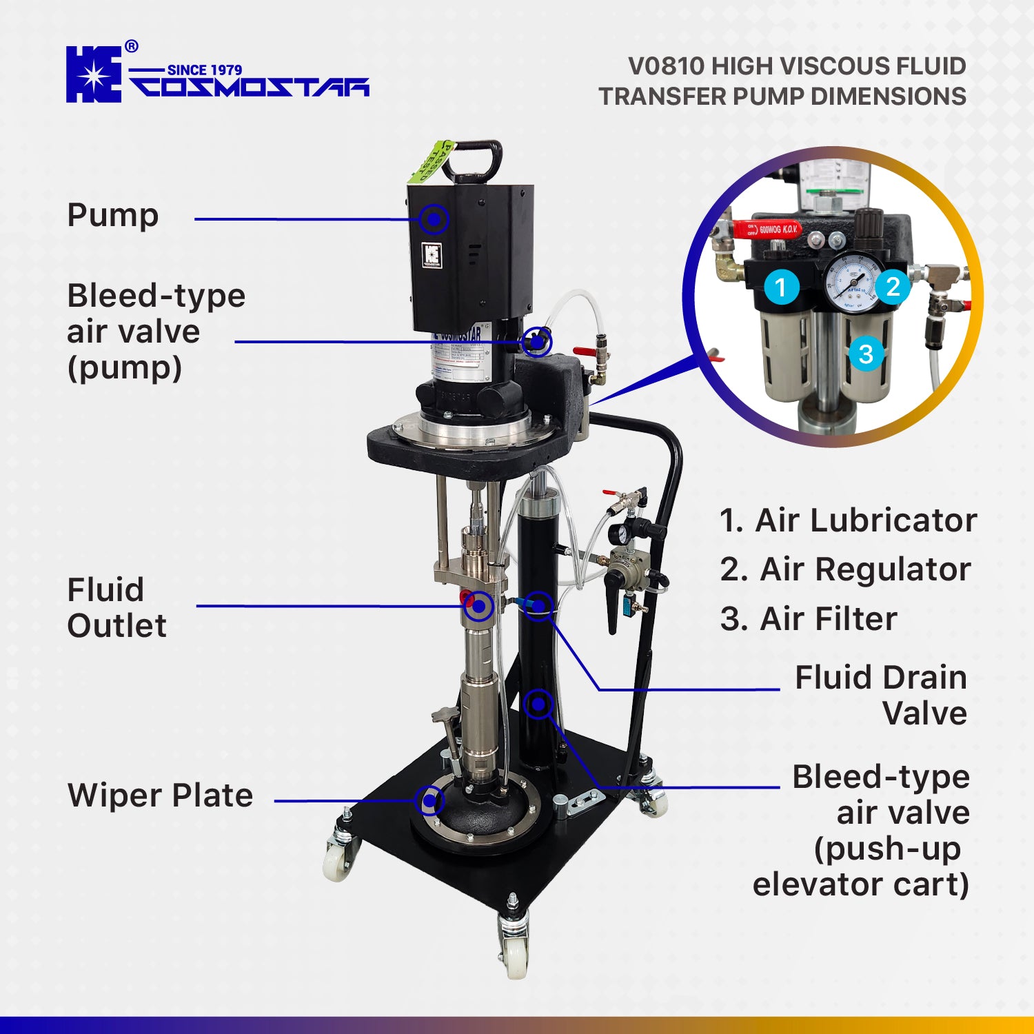 - Compact and Efficient:Â The V0810's 6" Altas Air Motor, paired with ViscoPro displacement, delivers a compact, space-efficient solution without compromising the pump's power or performance.
